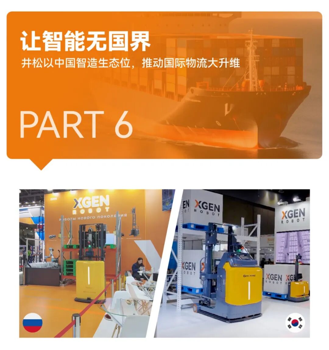 置身智能化巨浪大潮,井松智能凭借海外亿元项目成功背书,开启国际业务全速扩展。2025年,井松国际品牌XGEN ROBOT在韩国、俄罗斯等国顶流物流展上热度出圈。