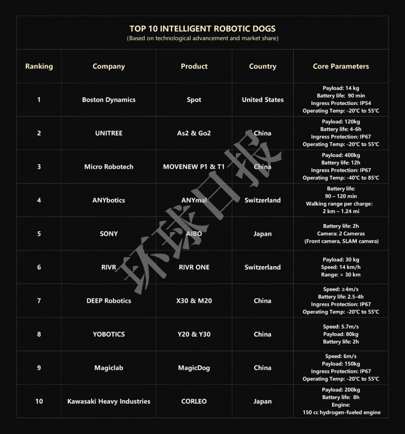 近日,《环球日报》发布世界十大智能机器狗榜单。凭借技术优势和市场份额的领先性,中国企业宇树科技、具微科技、ink-id="link-1775630936585-0.15601747090660578">云深处科技、优宝特、魔法原子五家上榜,占领榜单一半席位。其中,杭州作为全球机器狗出货量最大的城市,“杭州四小狗”企业三家上榜。上榜企业如下: