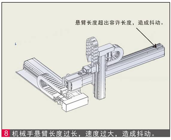 8、机械手臂(电动滑台)悬臂轴行程过长,悬出长度过大。