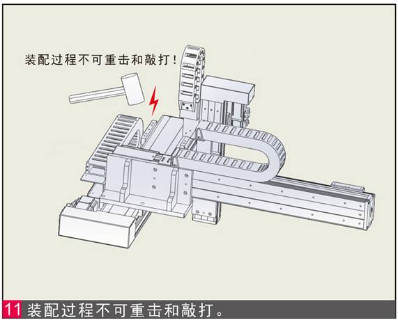 机械手臂属于精密部件,不可强行敲打和强行锁附,不当安装,会使滑台变形,精度受损, 寿命缩短。