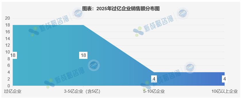 平稳增长期(2022-2025):2022-2024 年过亿企业数量稳定在 42 家,2025 年微增至 44 家,增速显著放缓,标志着行业从高速扩张进入存量竞争与结构优化阶段。