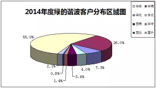 绿的目前主要市场集中在华东与华南地区,分别占55%和26%,2014年绿的在国内谐波减速机市场份额占到12%。国产谐波占到70%,2015年绿的谐波减速机销量26000台左右,占国产谐波65%以上市场份额。
