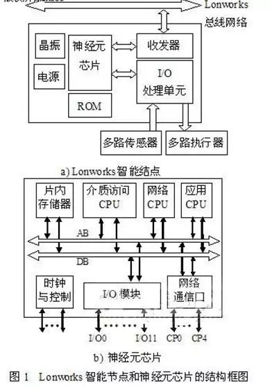 一个智能控制器及其传感器和执行器构成一个结点(Node),它可连接各种I/O设备,如工业机器人系统的行程开关、力传感器、关节电机等。LonWorks的无主站点对点网络方式,使其中任一节点的故障或关闭都不影响其它住户节点的正常运行,从而提高了系统的稳定度。且网络节点之间使用逻辑连接,使得系统中节点的增加、修改都很容易,便于系统调整和扩充升级。节点的核心是神经元芯片(neuronchip),它是通信处理、数据采集和控制的通用处理器,它通过运行芯片上的NeuronC应用程序来完成数据的采集、控制和网络操作的。